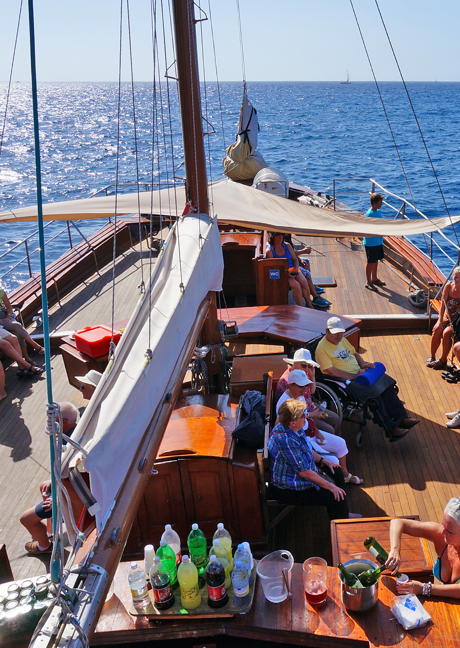 After marveling at these incredible creatures, we'll anchor in a secluded cove where you can swim in the clear waters and enjoy a delicious onboard lunch.